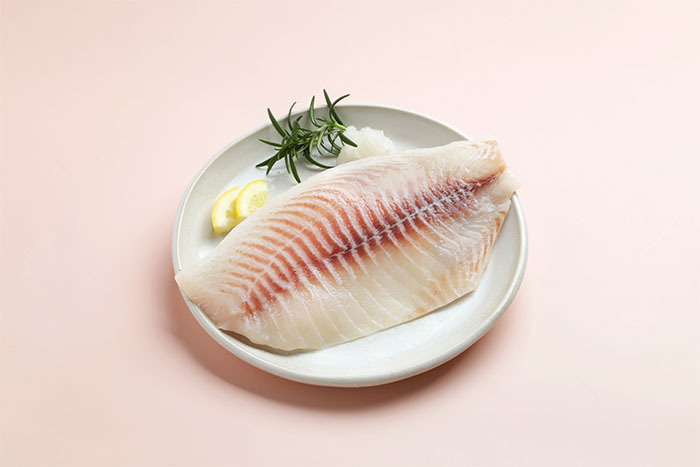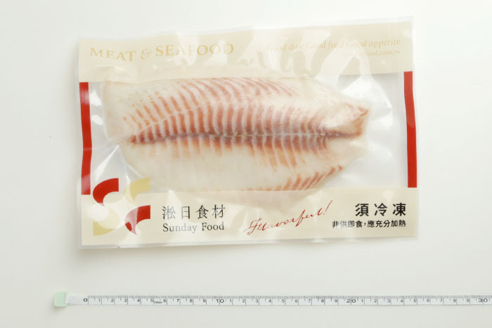 鯛魚片在加工階段,經過全魚分切、三清、去皮等流程,因為暴露在空氣中,顏色變成自然的褐色。許多廠商會添加一氧化碳,呈現鮮紅色的漂亮賣相。淞日則堅持不添加化學藥劑,保留最自然、最安心的色澤!
